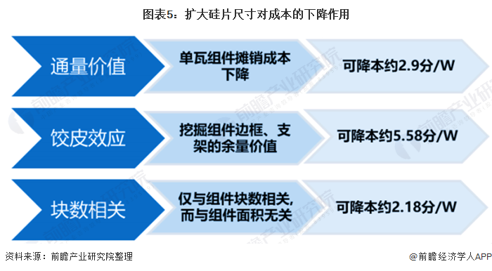 1)通量价值,硅片尺寸增加,现有设备产能增加,单瓦组件所摊销的人力、折旧等成本降低;