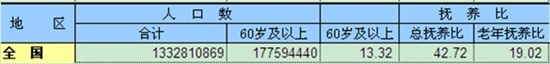 2010年中国第第六次全国人口普查数据显示,中国60岁以上的人口比重达到13.32%,达到1.7亿多人。