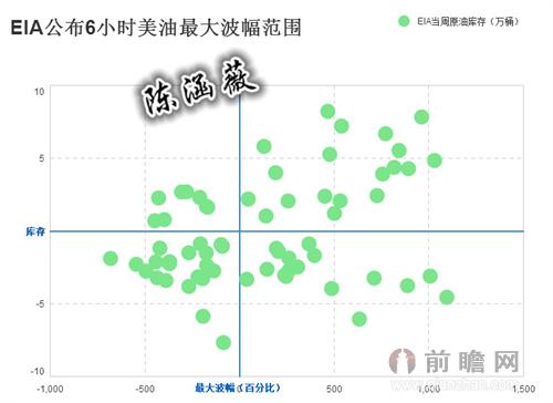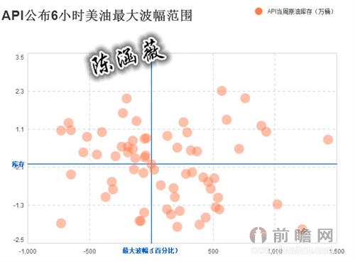 下面统计了API和EIA公布6小时内美原油的最大波幅,从中可根据公布的库存范围,推测美油最大波幅范围,以指导投资。波动范围如下图所示。