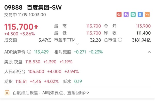 资本市场反应迅速。今日,百度港股开盘涨近4%。