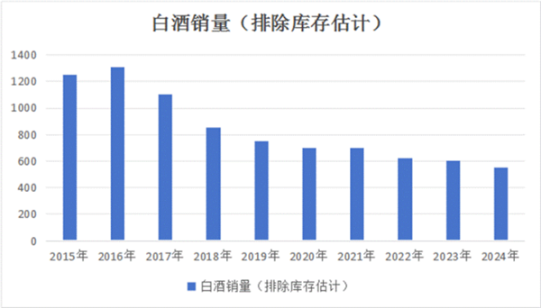 无论用哪种口径,白酒全国销量在过去10年中至少掉了50%以上。