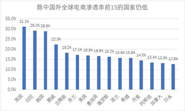 GMV约6.3万亿美元,拼多多全球GMV约7800亿美元,对应市场份额12%。参考国内稳态电商格局,头部企业份额通常在20%-30%之间。
