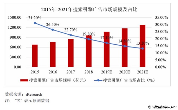 ②搜索引擎类营销市场规模稳定增长,但是占比缓慢下降