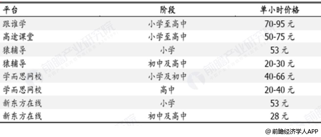 图表1:2019年主要线上K12培训机构的客单价对比(单位:元)