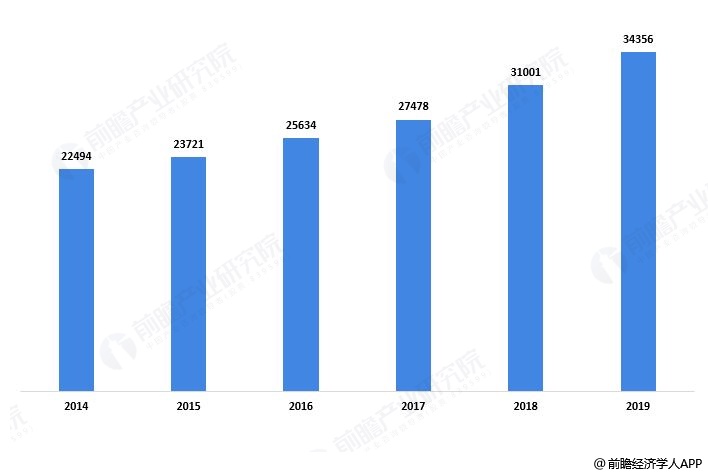 经过几年发展,排名靠前的餐饮企业大多都是连锁经营。我国餐饮企业开始重视品牌优势的塑造,注重企业规模的扩大,注重利用连锁经营和特许经营的方式进行扩张。2014年以来中国连锁餐饮门店总数逐年增加,2019年中国连锁餐饮门店总数为34356个,其中正餐服务门店总数7918个,快餐服务门店总数18725个,饮料服务门店总数7190个,其他餐饮业门店总数523个。